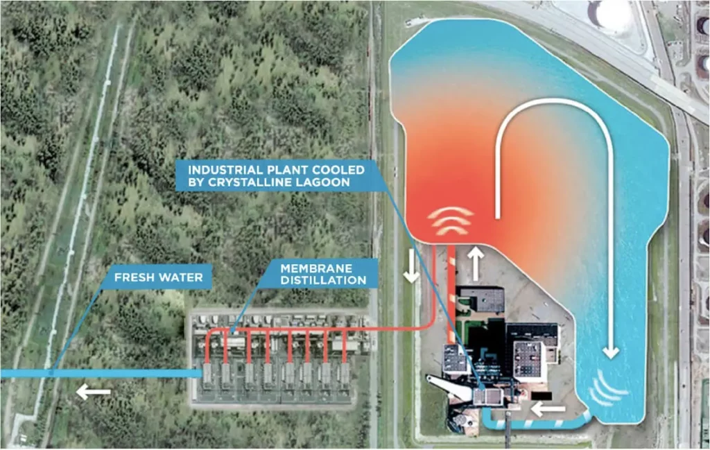 Two-thirds of the energy generated by power plants is lost to the environment as waste heat. Crystal Lagoons has developed and patented a state-of-the-art technology that can sustainably cool power plants, data centers, and other industrial processes while also capturing and taking advantage of the waste heat that would otherwise be lost. This waste heat is equivalent to two times the energy produced by all renewable sources combined. Most importantly, the waste heat captured can be used for desalinating water using membrane distillation with no additional energy, helping solve one of the world’s biggest problems: water scarcity.